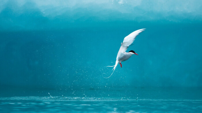 在波涛之间勇敢地飞航;